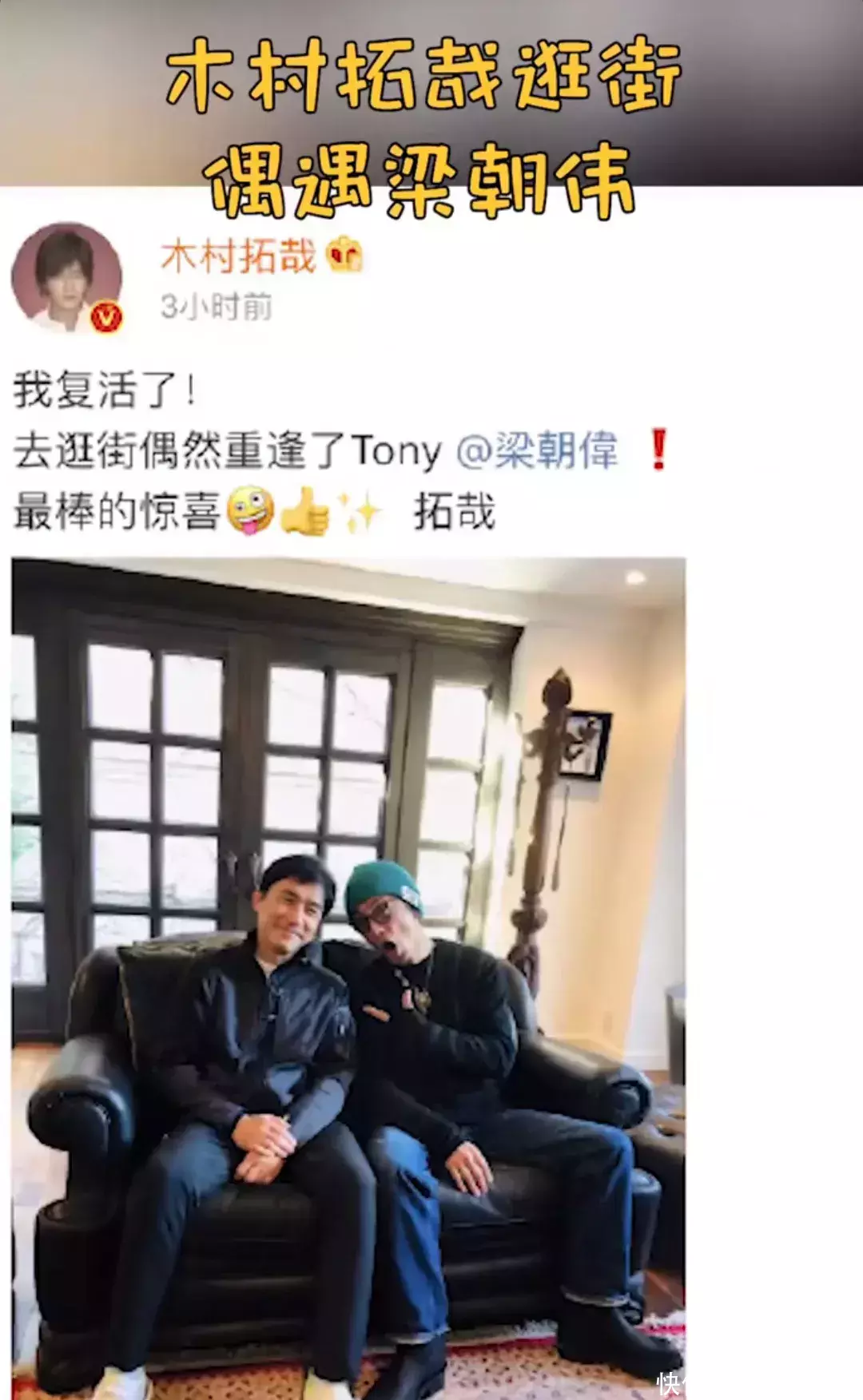 当时,木村拓哉不但在个人社交平台上,晒出了与梁朝伟的合影,还在图片中附文,这是很棒的惊喜,从图片中看,木村拓哉遇到梁朝伟也显得非常兴奋。